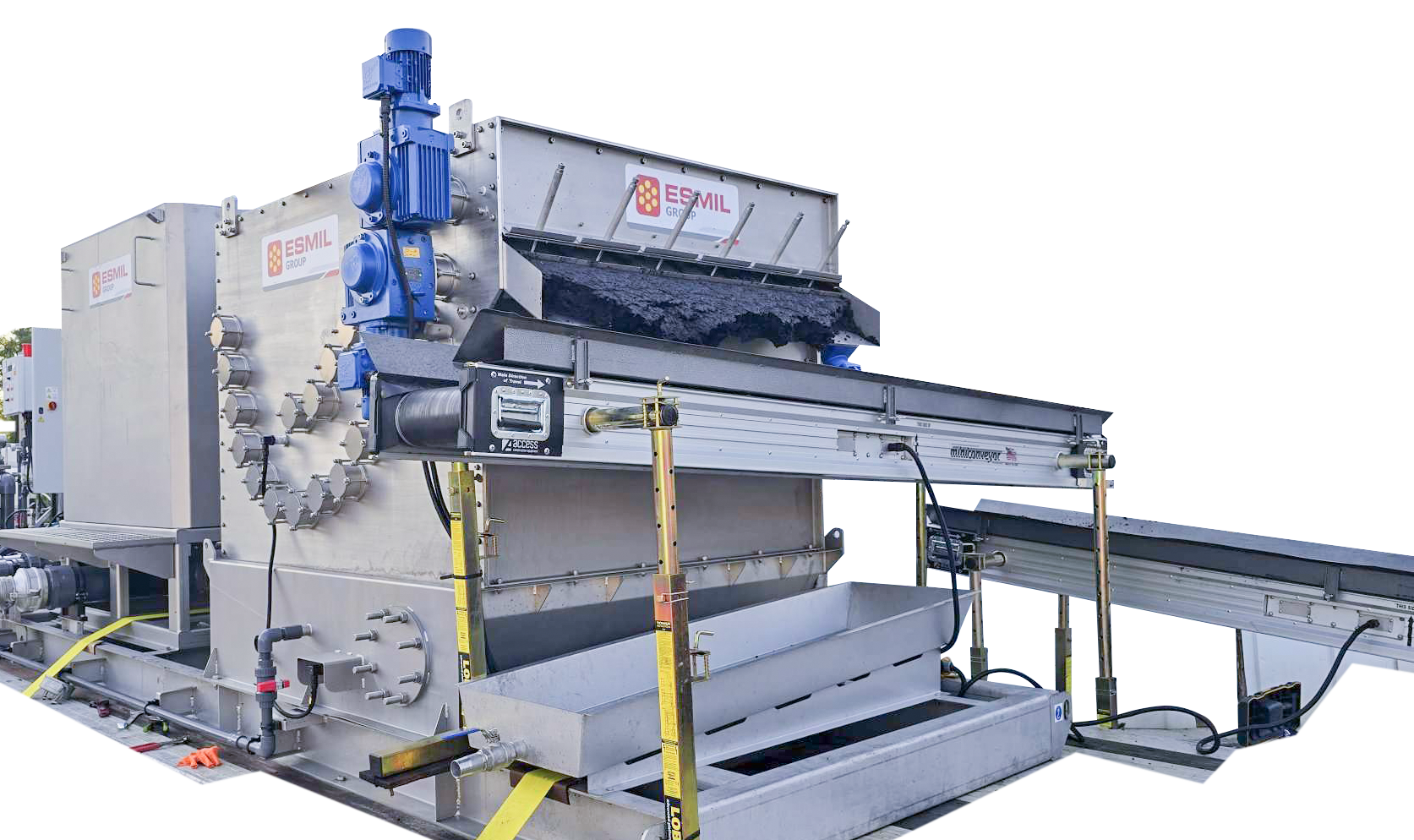 - Capable of dewatering sludge with low organic content, high abrasive particle content, fibers, fats, oils, and petroleum products.